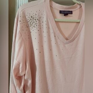 NWOT Gloria Vanderbilt sweater cardigan with rhinestone pink 3X CB 🪻