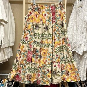 Apostrophe Skirt Women Medium Yellow Tan Tier Ruffle Floral Resort Tropic Cotton