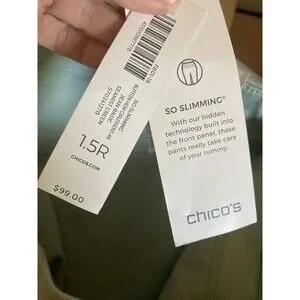 Chico's 10R Women's So Slimming Girlfriend Leg Ankle Green Blue Pants 1.5R New