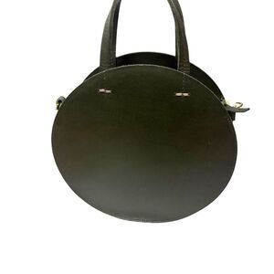 Reminiscent of vintage circular luggage, the Petit Alistair crossbody from Clare V gets a refresh in loden green. Made of vegetable tanned leather, the structured round body has dropped, contrasting emerald panels with inset red zipper. Effortlessly chic, Alistair can be carried with the top handles or removable shoulder strap. Interior zippered drop pocket. 45 1/2" removable strap; 3 1/4" handle drop. Also shown with army & poppy Masculin Feminin crossbody strap, sold separately. 9 1/2" x 3