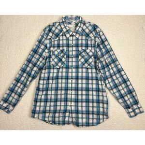 American Eagle Shirt Mens XXL Pearl Snap Blue Plaid Western Ranch Long Sleeve