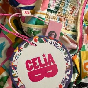 NWT Celia B Colorful Geometric Print Halter Dress