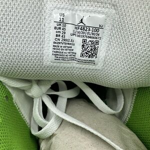 Step into style with the Air Jordan 1 Low SE in a striking size 11, featuring the exclusive style code HF4823-100. The sleek design boasts a white base complemented by dynamic lighting and chlorophyll accents, creating a vivid and versatile look that's ready to elevate any outfit.