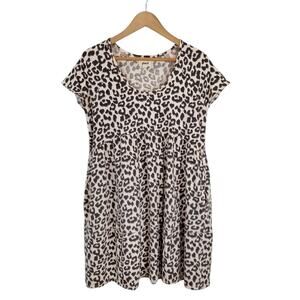 Pact Women's Leopard Animal Print Jersey Knit Babydoll Dress Cotton Size Medium