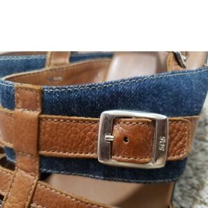 SAS Sandal Womens 8.5 Blue Jean Wedge Strappy Heels Comfort Brown Casual Shoes