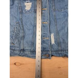 Forever 21 Distressed Denim Trucker Jacket Blue Womens Sz Medium Buttons Pockets