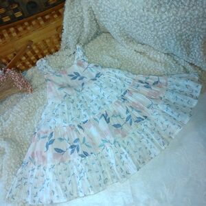 Elevate your wardrobe with this elegant floral pleated skirt. Featuring a beautiful white base with blue leaf patterns, this skirt is perfect for any occasion. Pair it with your favorite top for a chic look.