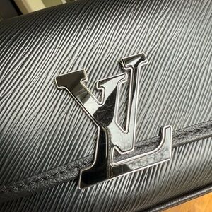 Elegant Louis Vuitton shoulder bag in classic black. Perfect for any occasion with its sleek design and premium quality. Dimensions: 9.5x5.5x3.5 adjustable strap for 25in or 45in. Excellent condition, no scratches no stains. Mini scratches only on hardware. Comes with dust bag and a box.