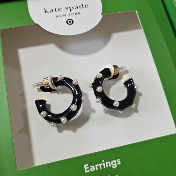 Kate Spade New York x Target Pearl Polka Dot Black Hoop Earrings NIB