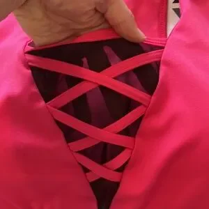 Pop Fit Sports Bra / Athletic Tank. Women's 4X. Hot pink with black mesh. Removable cups. Pre-worn; good, used condition showing minor wear.
