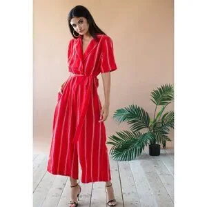 Eva Franco Anthropologie Red Stripe short Sleeve Cropped Wide Leg SummerJumpsuit