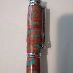 Elegant Faux Wood and Turquoise Fountain Pen