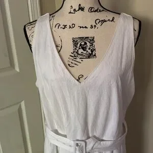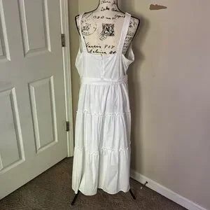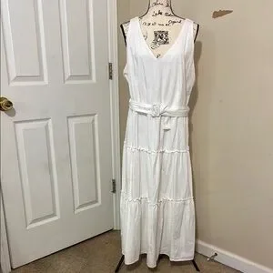 Ann Taylor White Cotton Blend Sleeveless Belted Tiered Midi Dress Size 16 Easter
