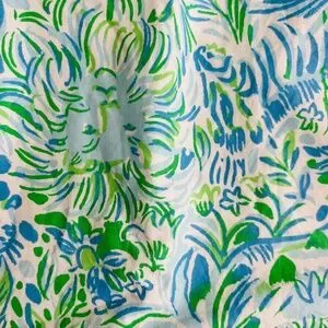 Adorable blue, green, and white print. There is no neon in this dress! Classic! Size 8. Worn a few times and in perfect condition!