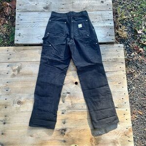 Men’s double knee carhartt pants. High waist, true to 28 inch size. Lots of room for movement in legs. I love the way these fit compared to the women’s carhartts. They are just too small for me now. No tears or rips, but nicely broken in. A few stains as shown in photos.