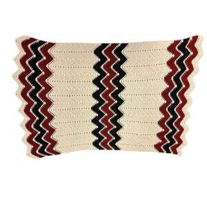 Knitted afghan crochet chevron throw homemade 77” x 52” red cream black blanket