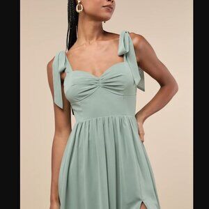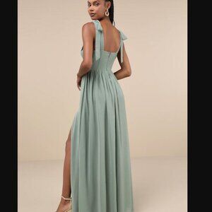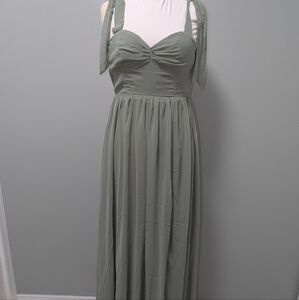 NWOT Radiant Charisma Sage Brush Chiffon Ruched Tie-Strap Maxi Dress
