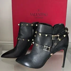 Valentino Garavani Rockstud Black Ankle Boots Size 37
