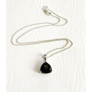 925 Silver Ball Chain Pendant Smoky Quartz Triangle Pendant Necklace 4.79g