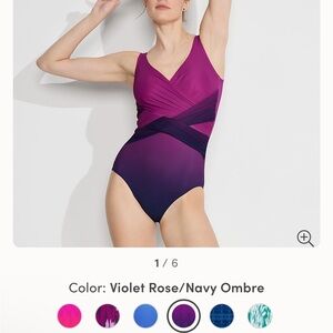 NWOT Lands End Swimsuit Sz 18 Ombre Purple Pink one piece flattering v-neck New