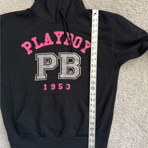 Chic black hoodie with iconic pink and gray Playboy graphics. Perfect for casual wear.