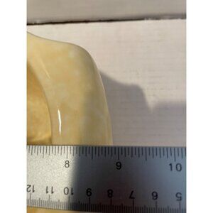 This is such a pretty an unique mixing bowl as it has a very unique shape and color. It is so pretty and would look lovely as a centerpiece, with fruit or veggies in it or to use as a mixing bowl. It is heavy and well made. It is in like new condition used for short time as decor.