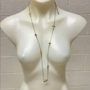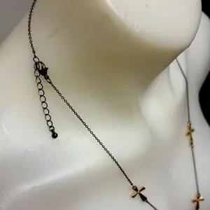 This elegant necklace features a delicate chain adorned with gold crosses, perfect for adding a touch of sophistication to any outfit. The combination of gold and silver tones makes it versatile for any occasion.