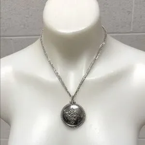 This elegant silver pendant necklace features a beautifully detailed design, perfect for adding a touch of sophistication to any outfit.