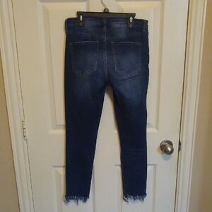 Stylish and comfortable, these Free People blue distressed jeans are perfect for any casual outing. The frayed hem adds a trendy touch to your look.