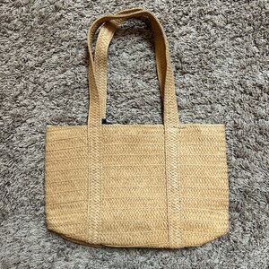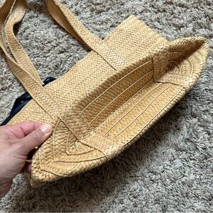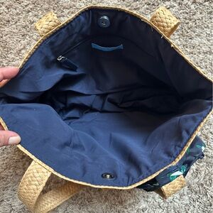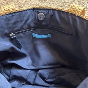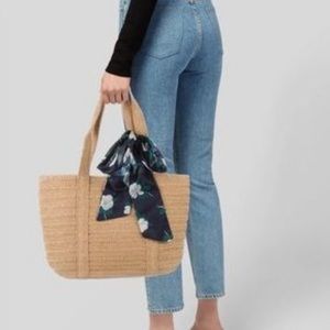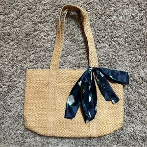 New without tag, Draper James Everyday straw bag. Tote bag style with navy blue floral bandanna tied to the strap.
