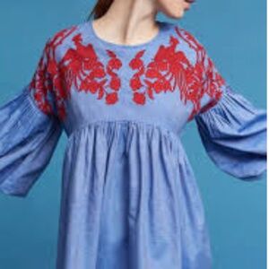Anthropologie Hemant & Nandita Women's Lianna Embroidered Blouse Blue Large