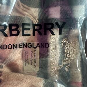 Elegant Burberry checkered scarf in beige, black, and red. Perfect for a stylish look.