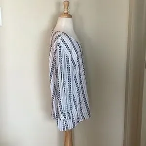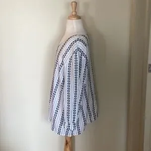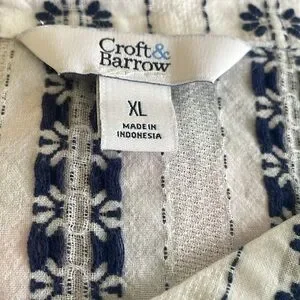 For Sale Is An Excellent Used Condition~Woman’s XL Croft & Barrow V~Neck Floral Embroidered Navy Blue & White 3/4 Sleeve Top. The top features a Blue Embroidered floral stitching on a White Fabric with 3:4 Length Sleeves and a V~Neck. The top measurements are: Pit to Pit: 22 Inches and Too to Bottom: 24 Inches. The top is in excellent used condition and has no rips/tears/stains or damage of any kind. The item comes from a smoke free home. Please contact me if you have any questions in regard to the item for sale in my closet. Thank you kindly and have a great day.