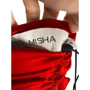 The MISHA Evianna Satin Gown in Crimson Red is perfect for your next big event.