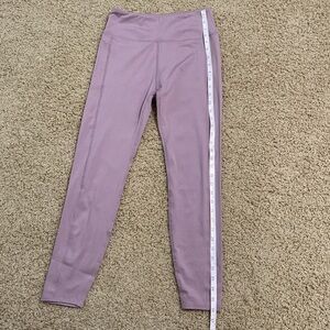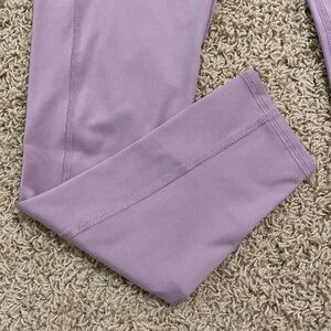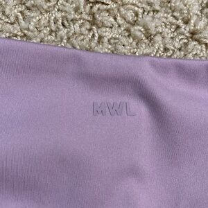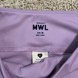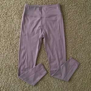 Madewell MWL Mid-Rise Flex Legging Features a mid-rise, a wide waist band, a light purple/lilac/color, and flat lock seams to reduce friction & prevent chafing. Made for low-impact, high-flexibility workouts like Pilates or yoga.