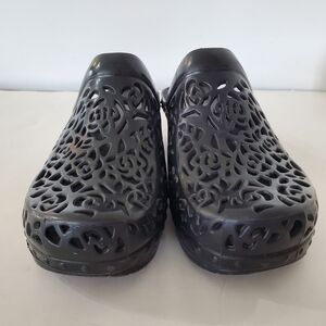 DANSKO PIPPA Sz 10 EU 41 Black Laser Cut Rubber Comfort Mule Clog Slip On EUC!