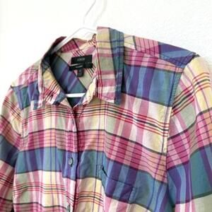 J.Crew Women's Classic Fit Multicolor Plaid Cotton Silk Shirt M Preppy Cottagecore