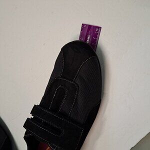 women's shoes, black sneakers, Hook & Loop strap shoes, slip-on sneakers, Munro shoes, suede and mesh shoes, black casual shoes, lightweight sneakers, Munro arch support, arch support footwear, comfortable walking shoes, women's casual footwear