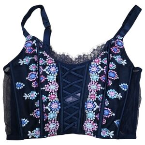 Unlined bejeweled embroidered corset top