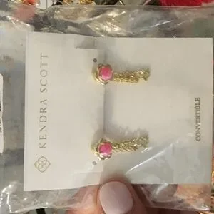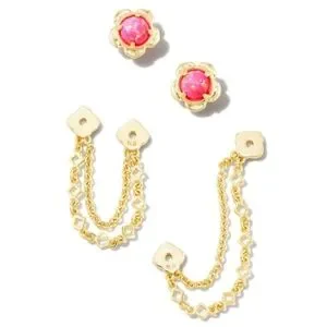 Elegant gold earrings featuring vibrant pink opal stones. Perfect for adding a touch of luxury to any outfit.