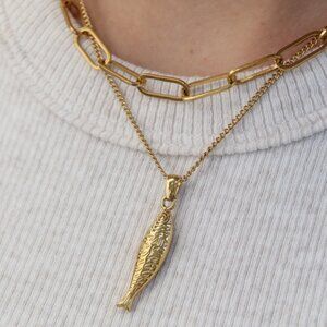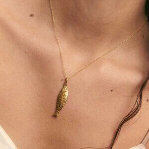 Add a playful twist to your summer look with our 3D Gold Sardine Pendant Necklace.