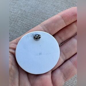 Stylish button earrings showcasing a minimalist abstract design in blue, black, and speckled grey on a white polymer clay base. Lightweight and perfect for a modern, artsy touch.