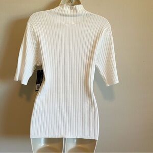 525 America Mock Turtle Neck Ribbed Short Sleeve Top Size Large Bleach White NWT