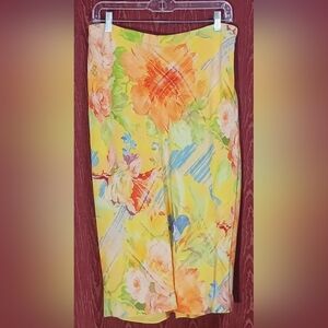 RALPH LAUREN Bright Yellow Floral Side Zip Skirt Size 10