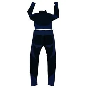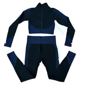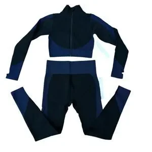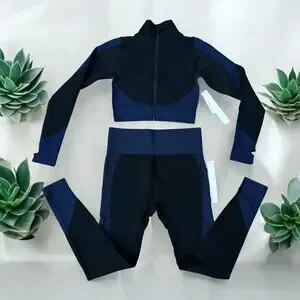 New Mix Zip Up Cropped Active Top & High Waist Leggings Set Black & Blue Size S