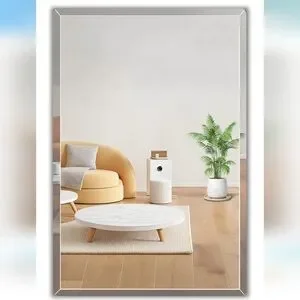 Enhance your home decor with this elegant beveled edge mirror. Its sleek design adds a touch of sophistication to any room. Can be hung vertically or horizontally. 16x12