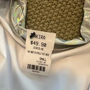 Akira never worn. Holographic backless skinny dress long sleeve size small. No real stretch just a little.