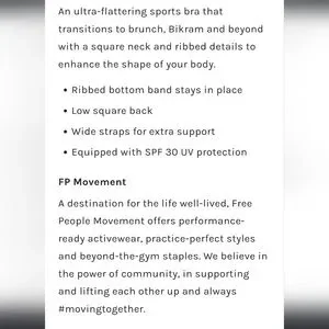 Free People Good Karma Square Neck SportsBra FP Movement Bra Top XS/S 🆕