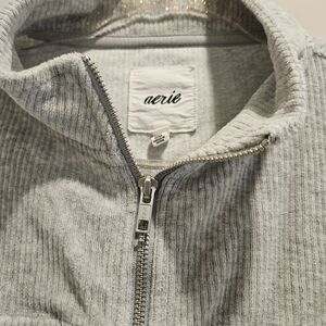 Cropped Grey Corduroy. Zipper closure with collar. very soft and comfy. warm.