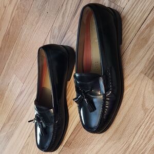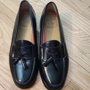 Step out in style with these Cole Haan black leather tassled loafers. Perfect for any occasion, these shoes offer both comfort and elegance.